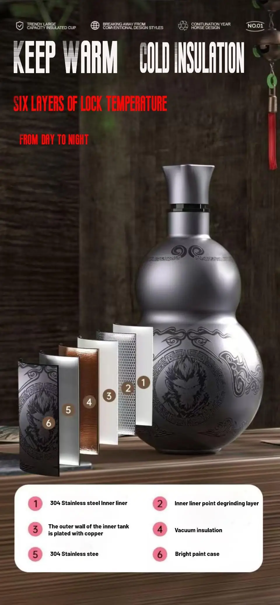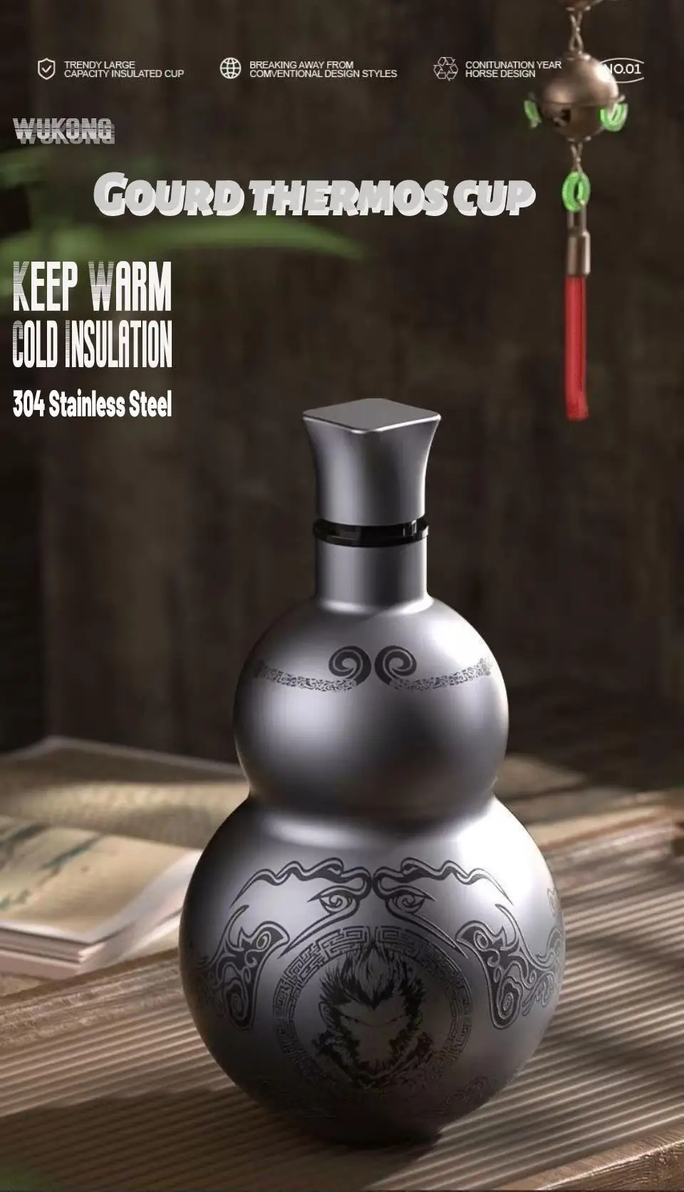 Stylish Design: Inspired by the legendary Wukong, this cup features an elegant gourd shape and contemporary aesthetics.