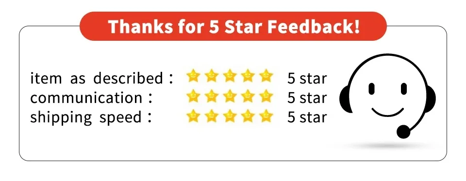 Q: How long will it cost that I can receive the goods? A: We need 1-2 business days to Sent , we can offer the faster shipping. Please note that you should pay extra cost for business express. Q: I still didn't received the package for long time,What happened to my order? A: In this stuation,please don't hesitate to contact us. sorry that did not give you a satisfying shopping experience. we will try our best to help you. Q: Will there be any tariffs? A: According to the platform rules, you have to do it yourself when the rate is generated. FeedbackYour positive feedback is the best encouragement for us. Please leave me a 5 star positive feedback if you satisfied with this order when you receive the items. If you have any question, Please contact us. I will reply within 24 hours and try my best to reslove any problems. Thank you very much!